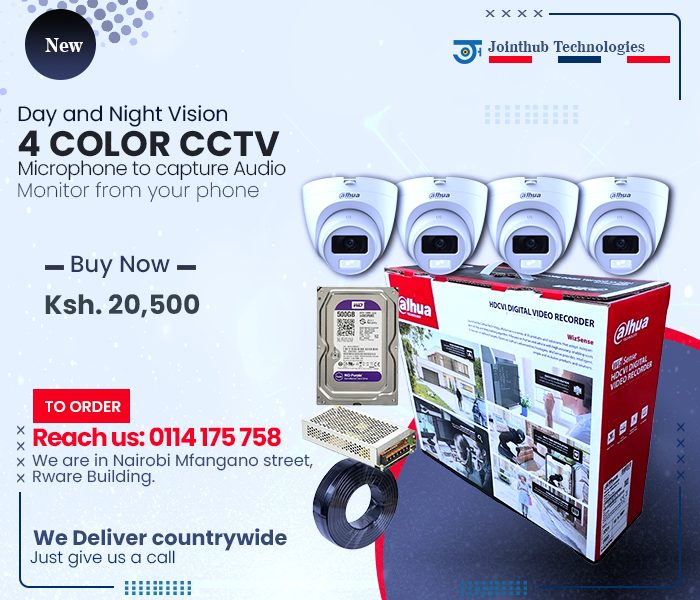 Hikvision 4-Camera 1080P Full HD 2MP Surveillance System with 24/7 Full-Color Night Vision, 500GB Storage, and 50M Cable Bundle KSh 24,499.00